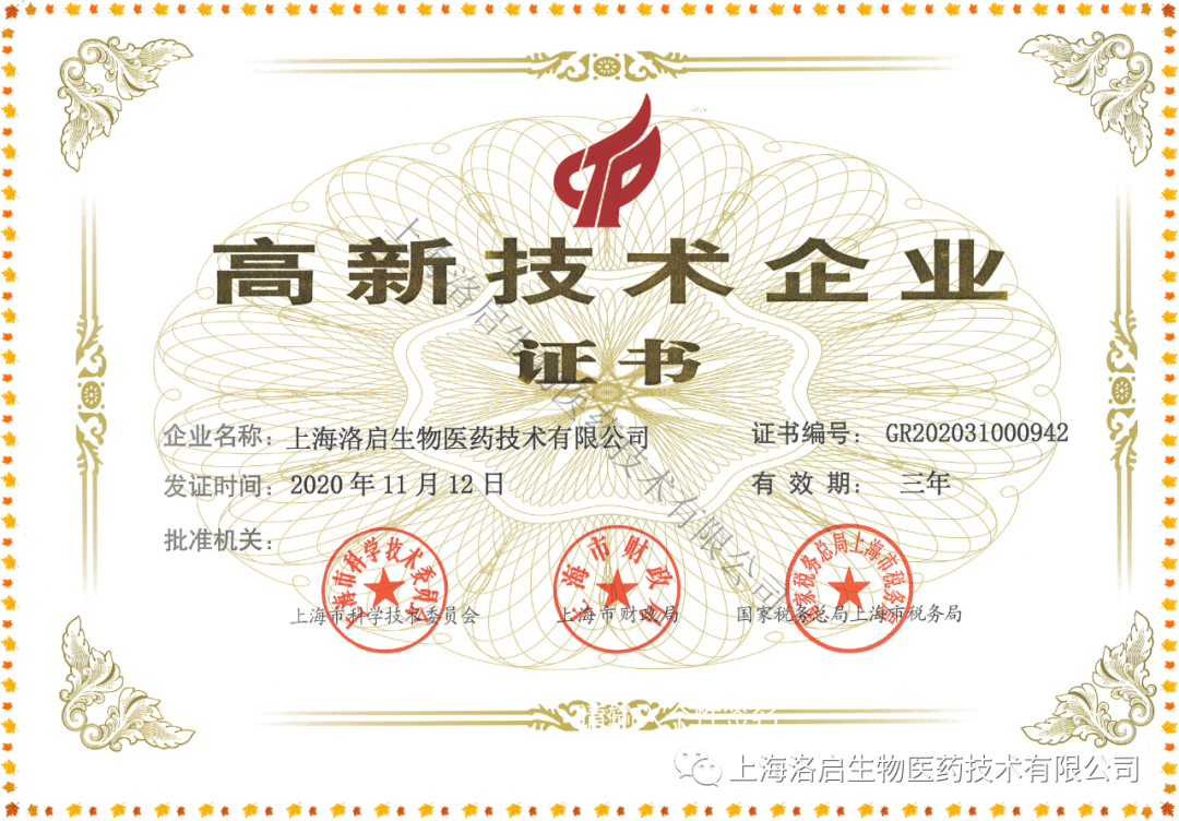近期,上海8040威尼斯(中国)生物医药技术有限公司取得了由上海市科学技术委员会、上海市财政局、国家税务总局上海市税务局联合颁发的“高新技术企业证书”。
