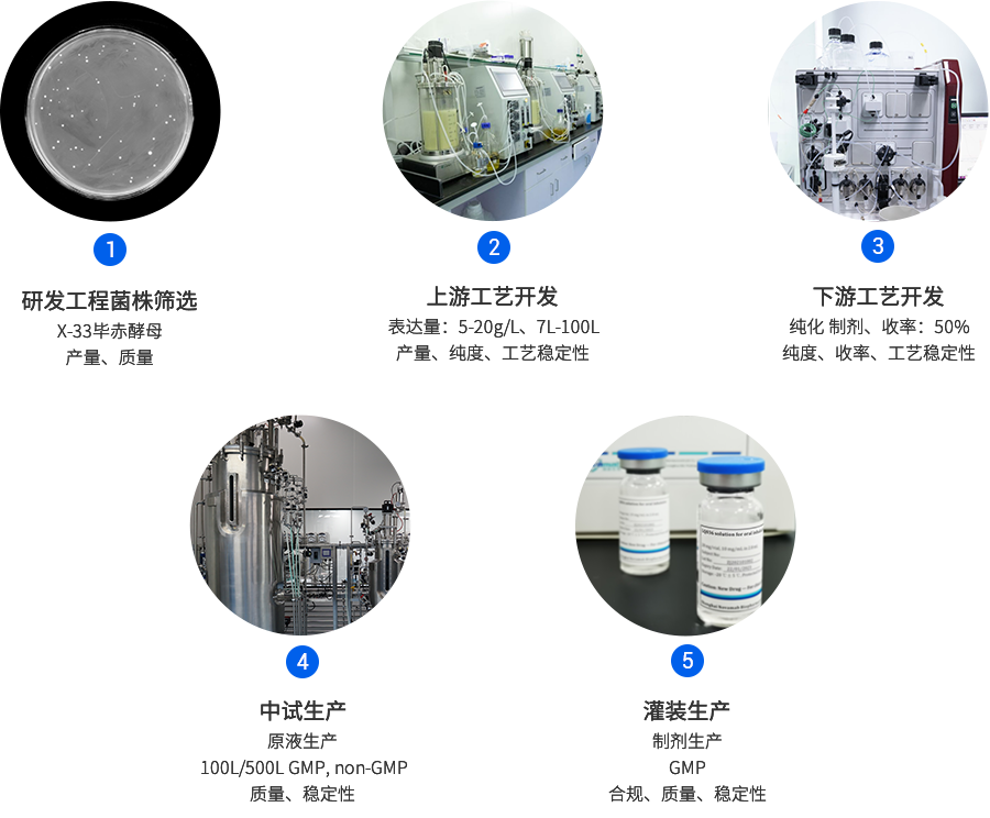 8040威尼斯(中国)生物已成功建立毕赤酵母CMC平台,现在已具备多个完整项目开发经验。毕赤酵母CMC平台90%以上的项目产量在1g/L以上,纯化平台工艺,其整体回收率在50%以上。从细胞株构建到蛋白纯化仅需3-4个月,极大地缩短了项目开发时间。